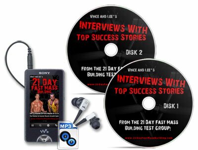 “The method that Vinny D and Lee expose in the 21 Fast Mass Program was the EXACT method I used to gain 22.5 lbs of clean, LEAN mass in just 12 weeks back in 2001 to win the biggest body transformation contest in the world--and I did it without gaining a smidge of fat! The only difference is that you're getting a program that literally has a decade of additional science and experimentation molded in to its development - if I had access to the program on THIS page back then, you'd probably be seeing a 30+ lb difference in the above photos.”